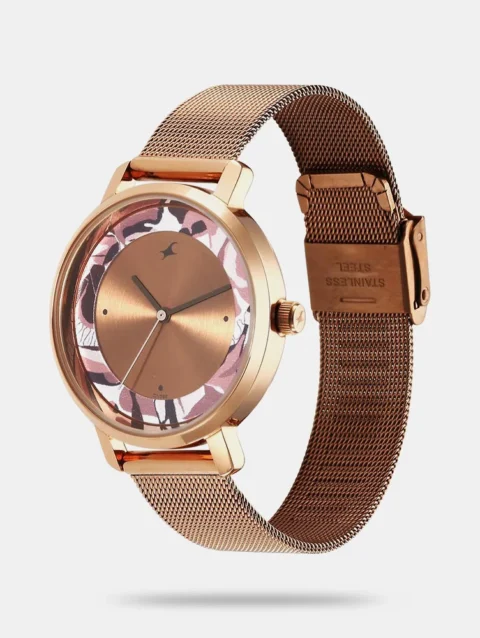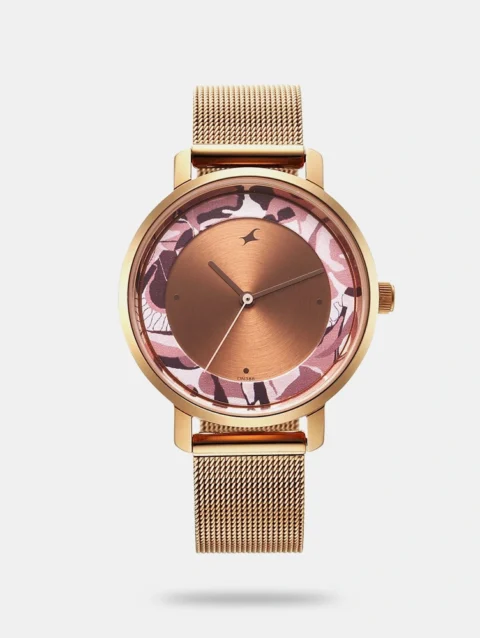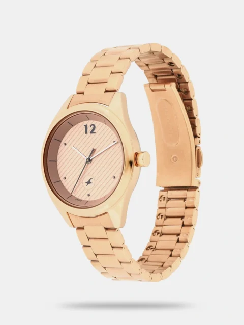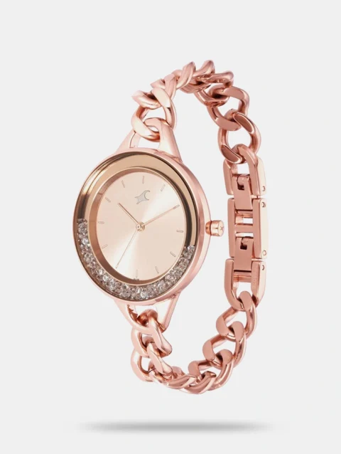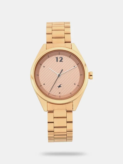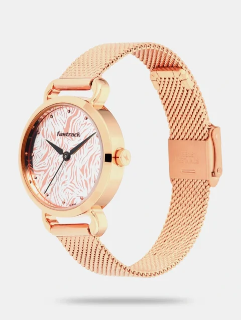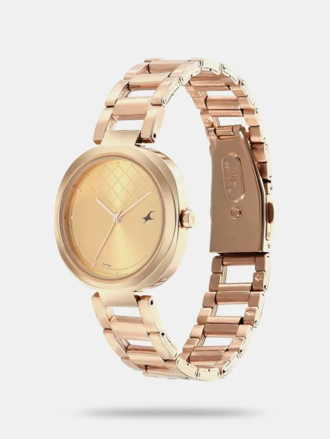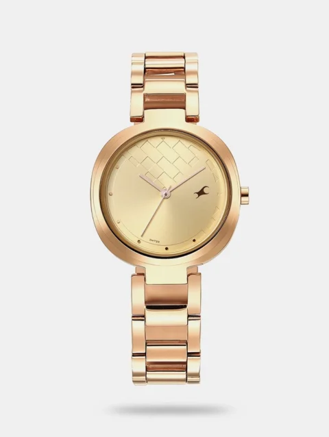 Fastrack Style Up Golden Dial Metal Strap Watch for Girls – 6258WM01