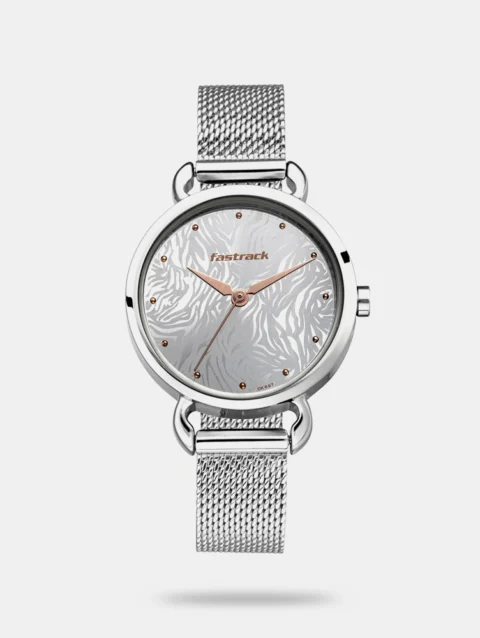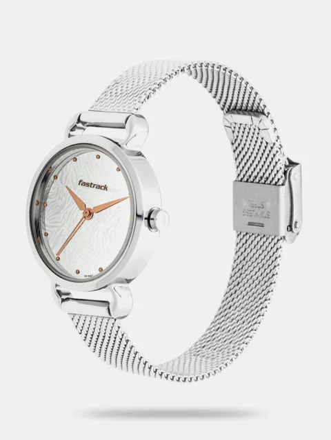 Fastrack Stunners White Dial Metal Strap Watch for Girls – 6152SM07
