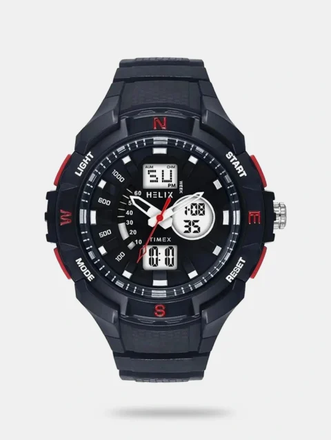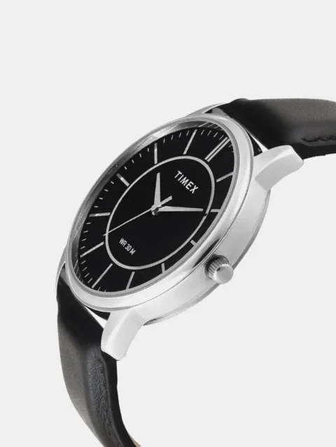TIMEX Men’s Black Analog Leather Watch TW0TG8004
