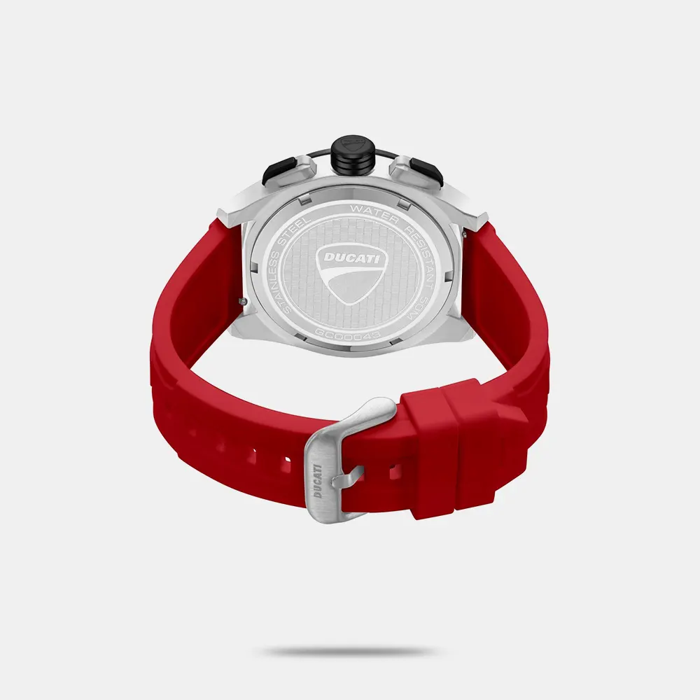 Name Ducati Quartz Chronograph Black Dial Red Silicone Strap Watch For Men