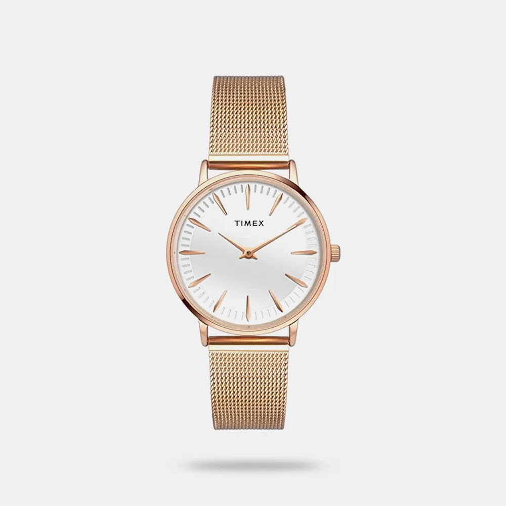 Style arrives effortlessly the moment you wear this beautifully designed watch from Timex. It comes with a round-shaped mother of pearl dial nestled in a case of 32 mm diameter. Showcasing a smartwatch functionality and quartz movement, it comes with a buckle clasp that ensures a secured fit around the wrist.