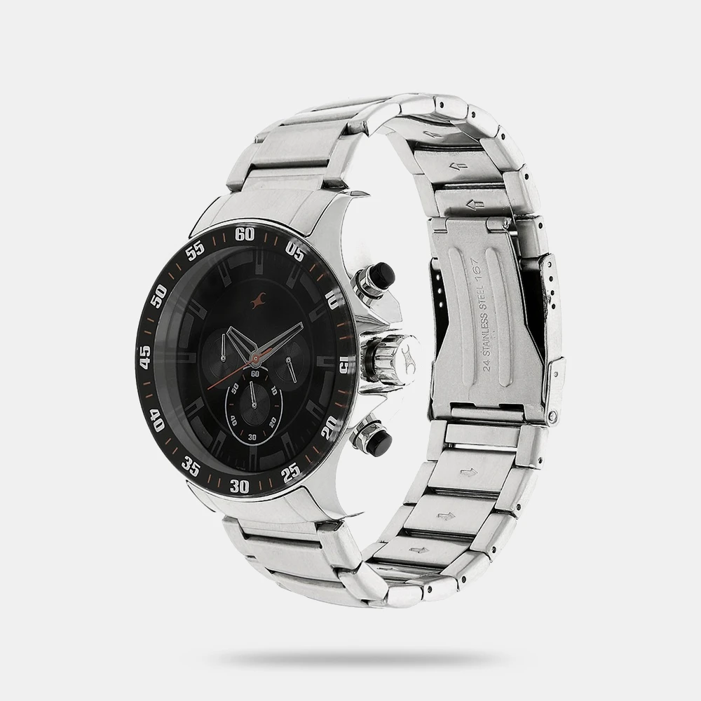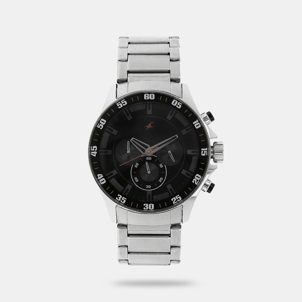 Name Fastrack Big Time Quartz Chronograph Black Dial Metal Strap Watch for Guys – NR3072SM04