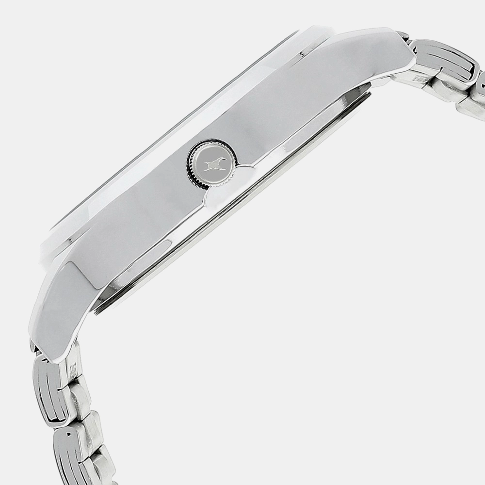 The ultimate, must-have accessory, this watch is a creation from Fastrack with a striking black dial encased in metal. A transparent mineral glass protects the dial and allows you to read time easily from a case that features an impressive thickness of 11.7 mm. The dial is detailed with baton indices placed at 5-minute intervals and the 3rd hour marker indicates time in minutes with Arabic numerals. A silver-toned case along with a silver-toned oyster strap complete the watch. A deployment clasp on the strap secures the watch in place. The watch remains protected against water up to 5 ATM and also comes with a 24-month warranty. Wear it with a casual attire for a smart twist to your ensemble.