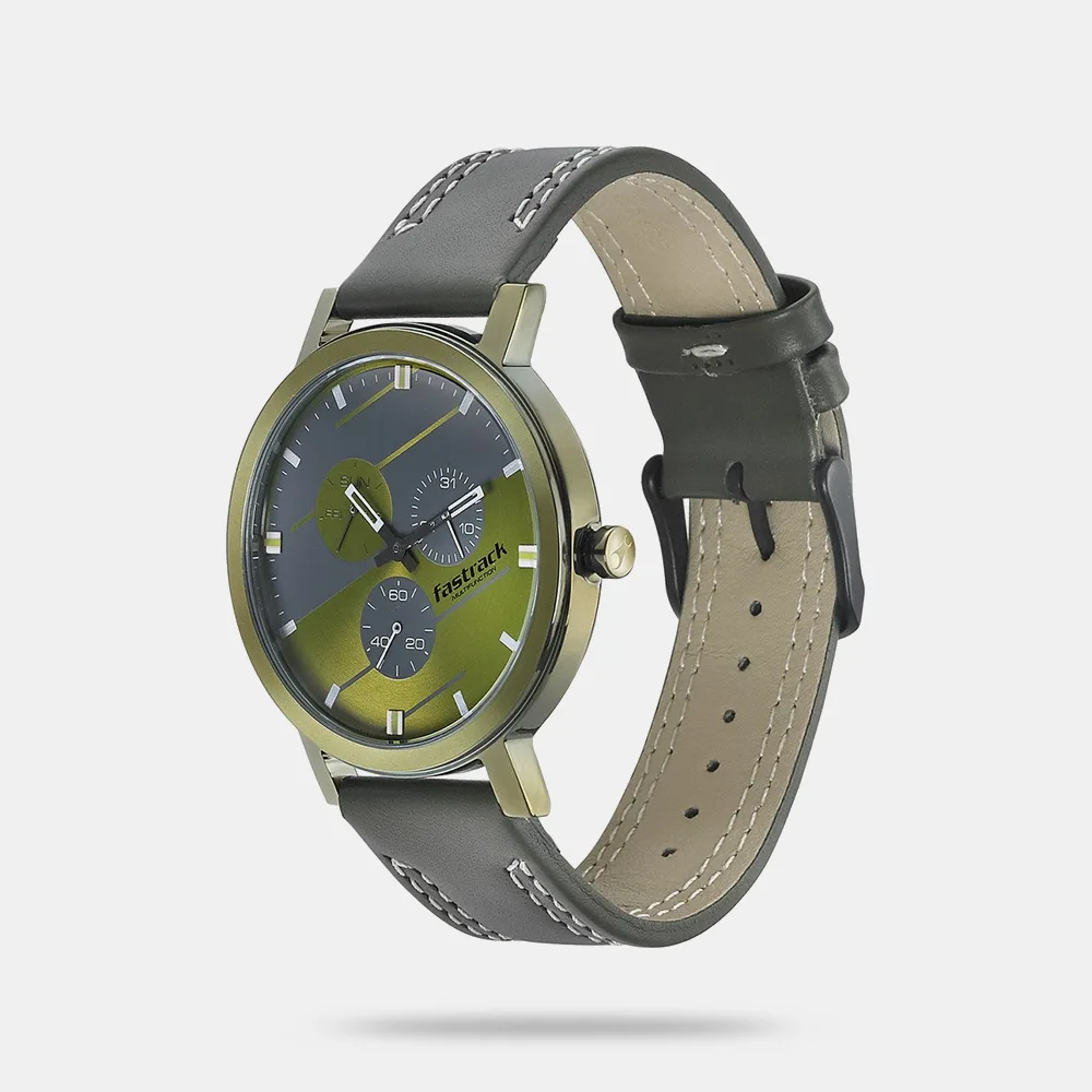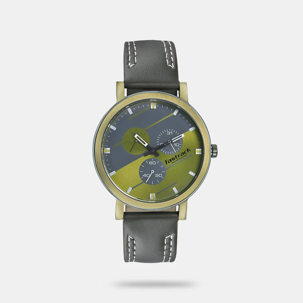 Fastrack Dial It Up Quartz Multifunction Green Dial Leather Strap Watch for Guys – 3238QL01