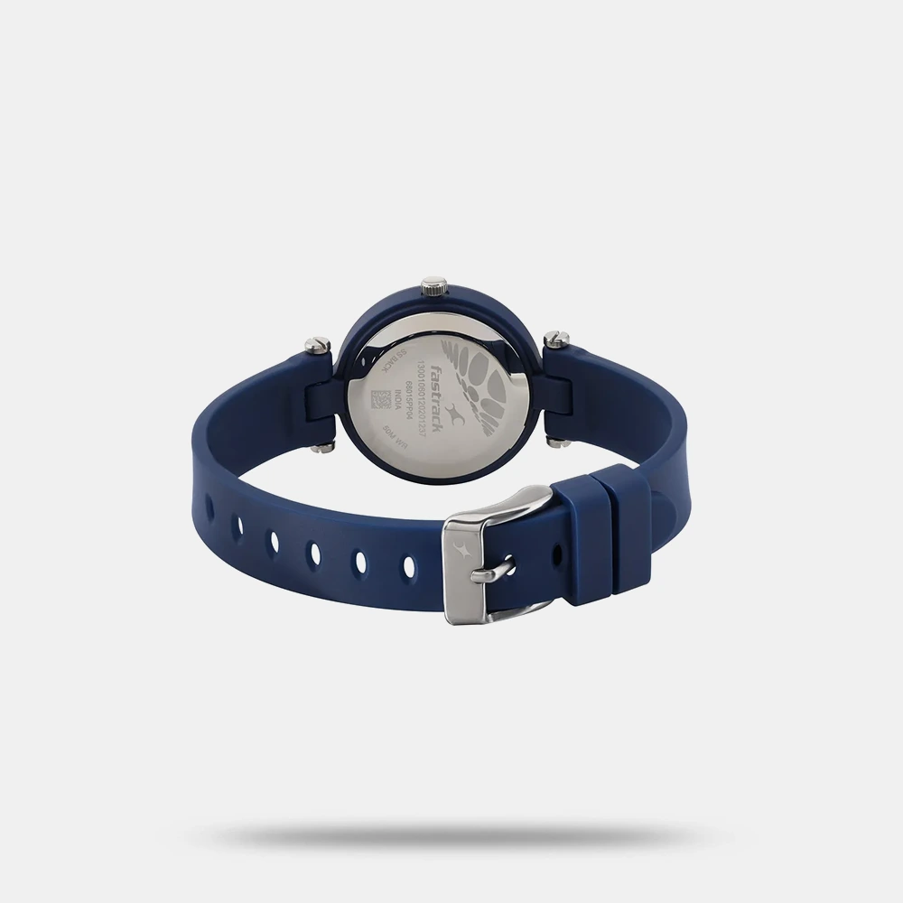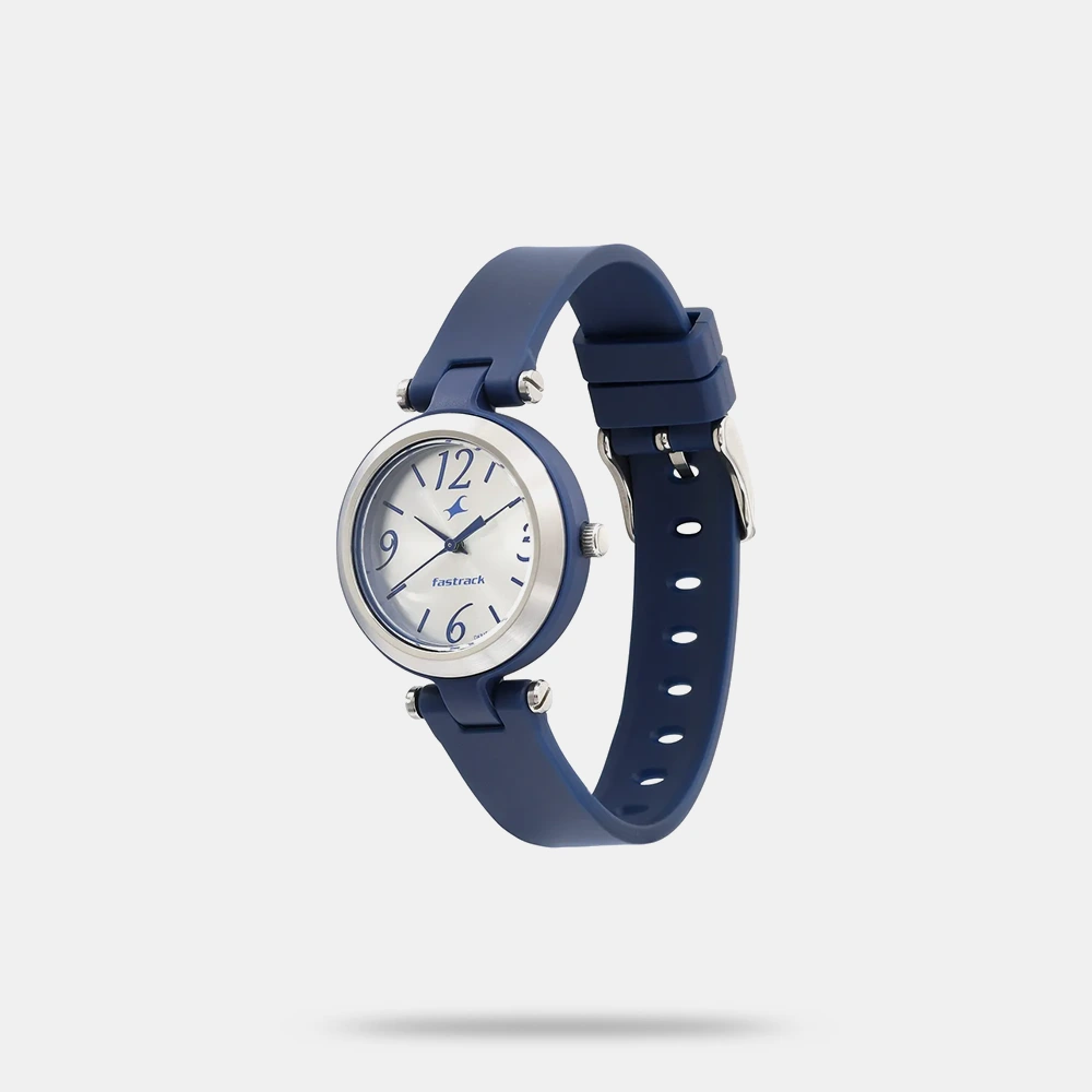 Add a playful touch to your everyday style with the Fastrack Trendies watch, designed to keep things casual yet sharp. The bright silver dial is adorned with bold blue numerals and stick indices, combining legibility with a youthful vibe. Its vibrant blue silicone strap ensures all-day comfort, while the polished silver-toned bezel brings a refined balance to the look. Whether you’re headed to class, a café, or a casual day out, this watch is your go-to companion for effortless fashion and function.