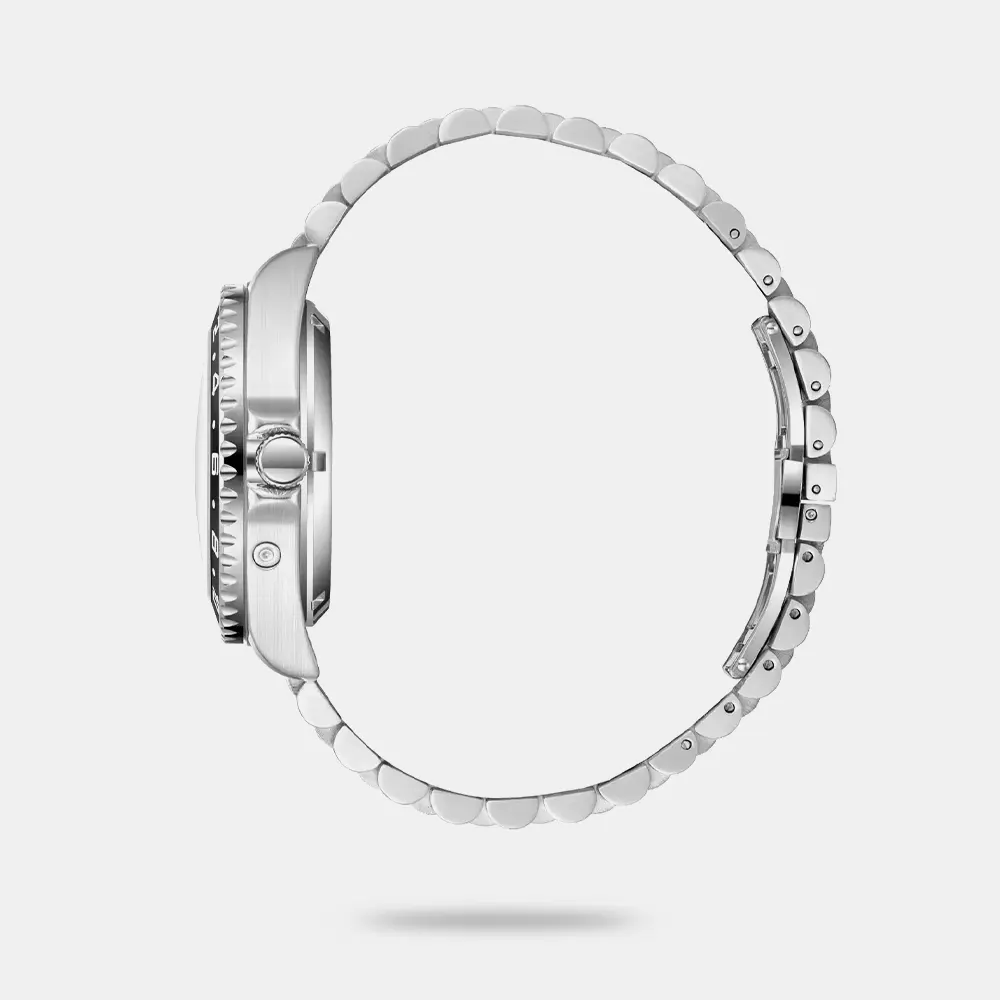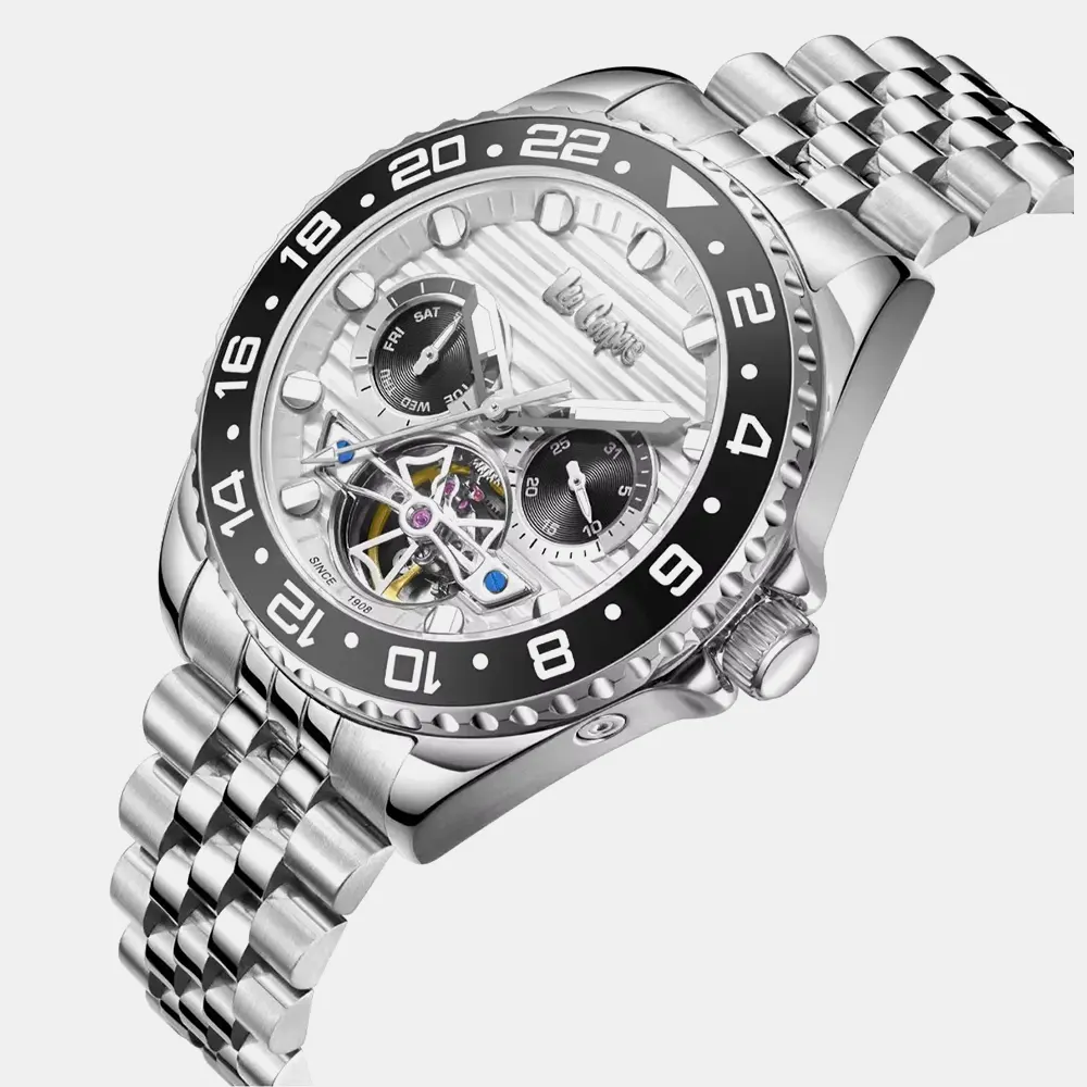 Round Super Metal Silver/Black Case With Automatic Display, Silver Dial 42 mm Case Diameter, TY2502 Movement, 5 Water Resistant Silver Metal Bracelet With Clasp