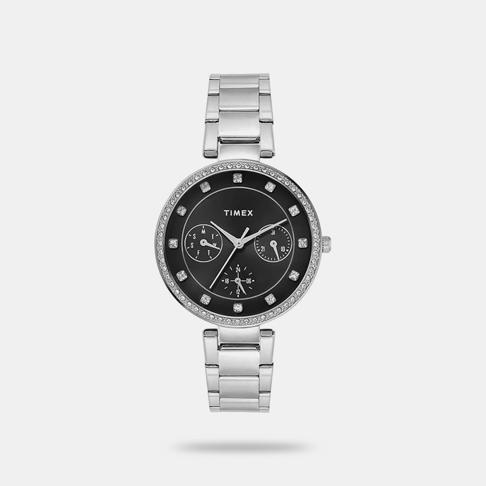 Timex Quartz Black Round Dial Analog Women Watch -TWEL18728
