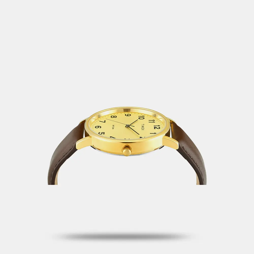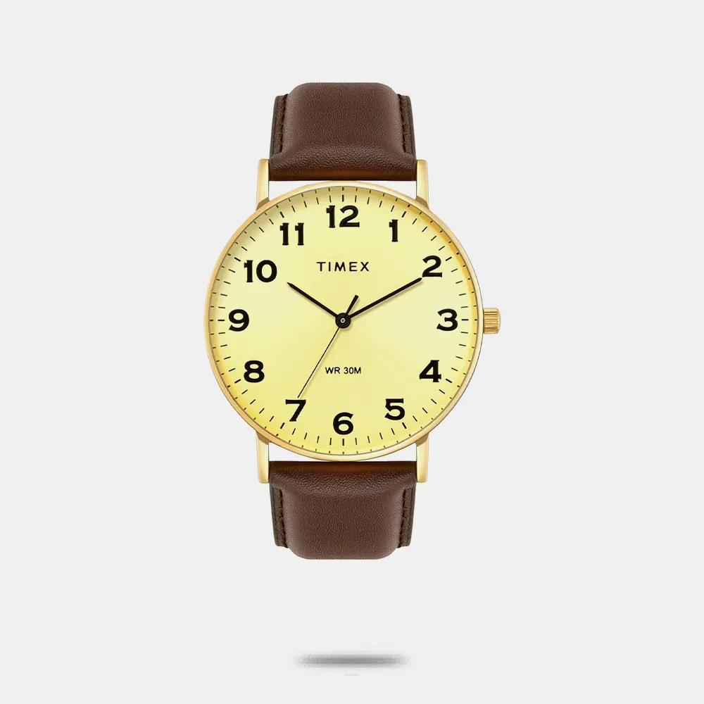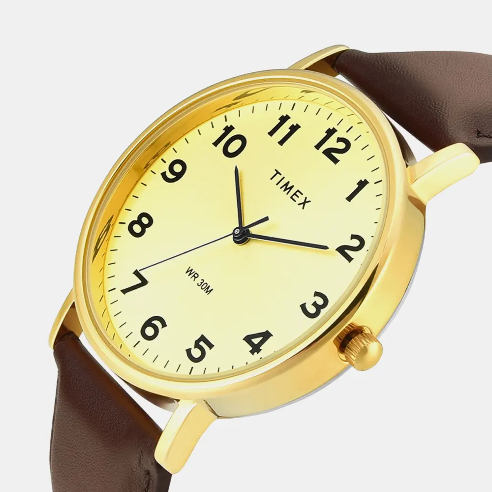 Experience timeless craftsmanship with the TIMEX Watch for Men Analog, a true classic among water resistant watches for man Analog. Designed with a bold 42mm Champagne dial and a stylish Brown Leather this Men’s watches model combines modern edge with vintage charm. Built for everyday wear, its Brass case ensures durability, while the 30 m water resistance makes it suitable for daily splashes and unexpected weather. The Analog watch for man runs on reliable Quartz movement, offering precise timekeeping that suits both casual outings and formal occasions.