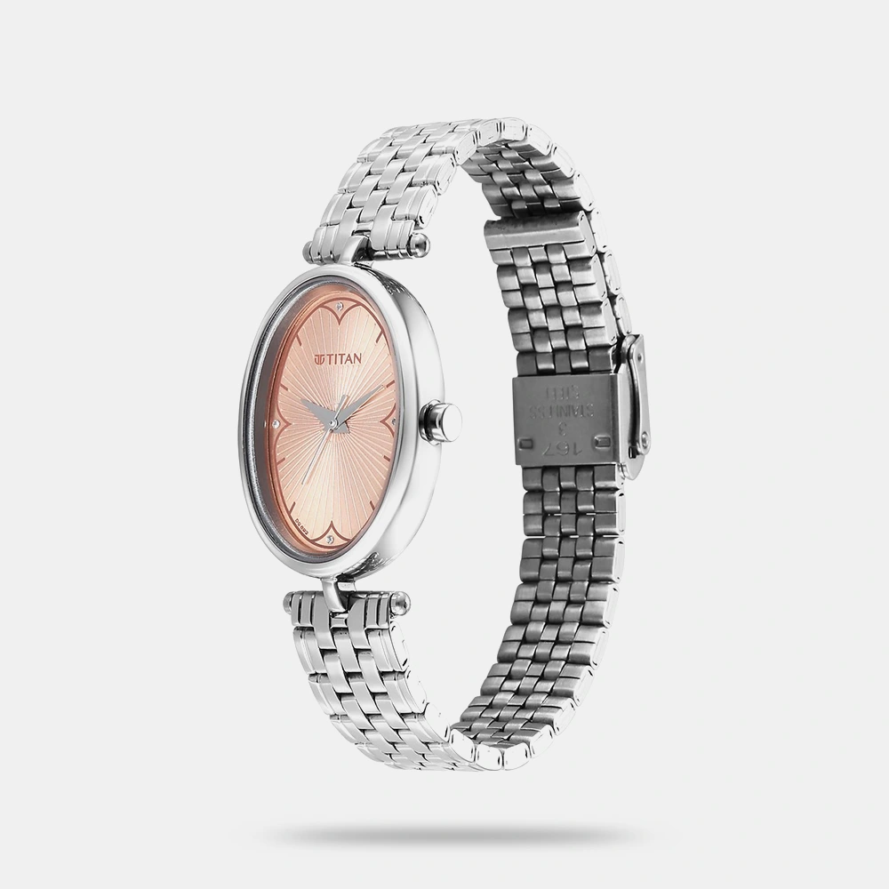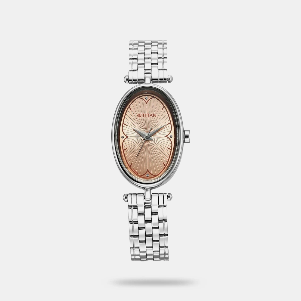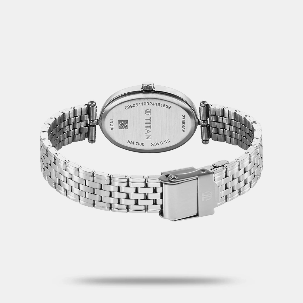 | Name | Titan Karishma Quartz Analog Beige Dial Silver Stainless Steel Strap Watch For Women – 2758SM01 |