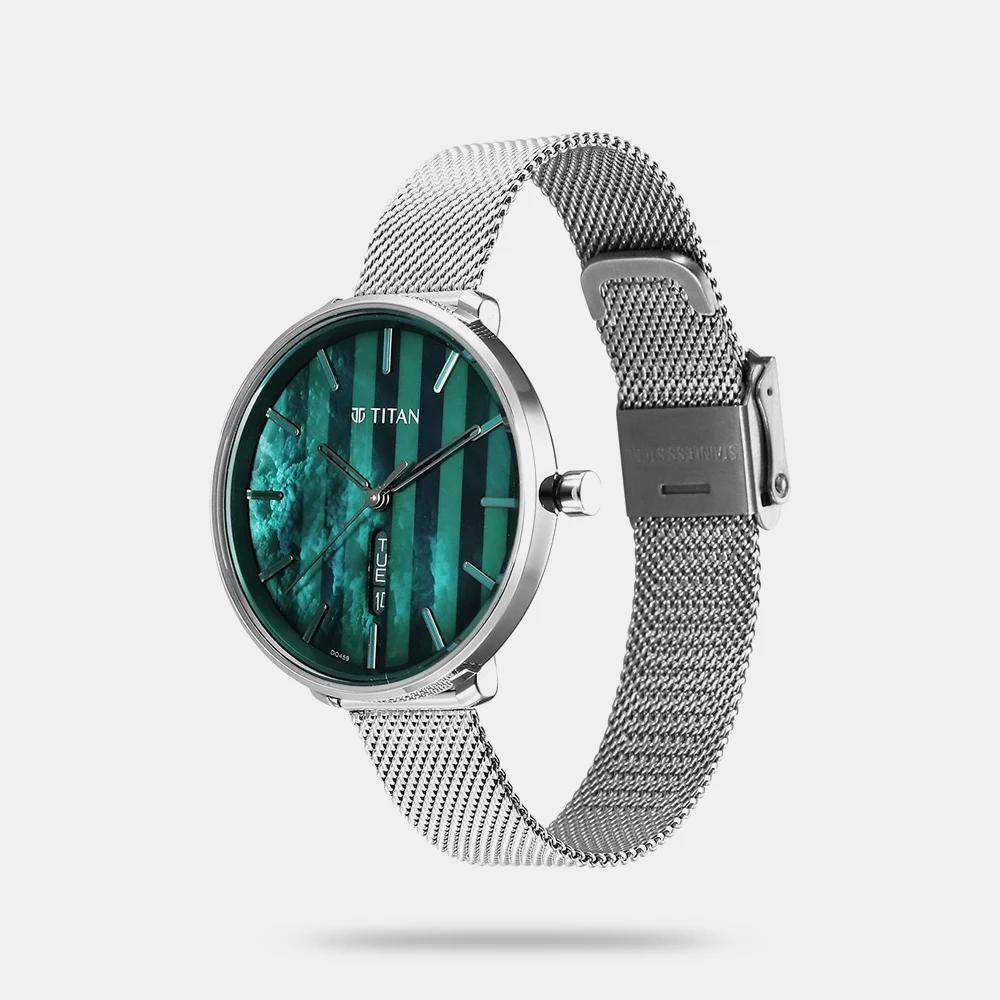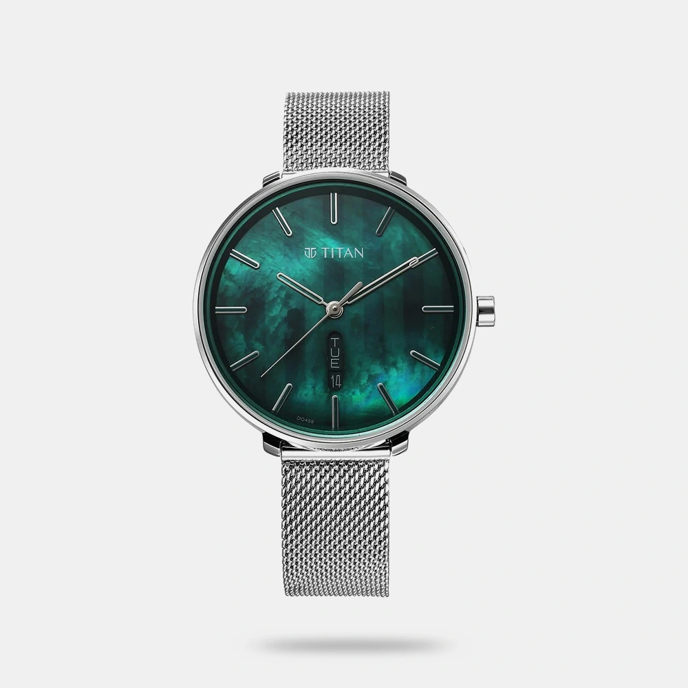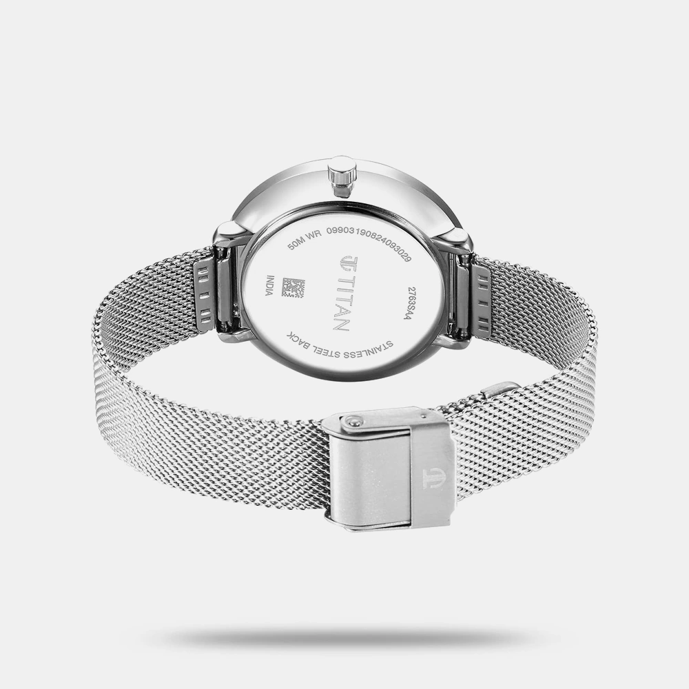 | Name | Titan Neo Analog with Day and Date Mother Of Pearl Dial Silver Color Stainless Steel Strap Watch For Women – 2763SM01 |