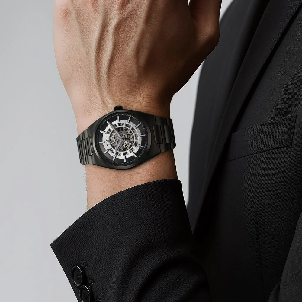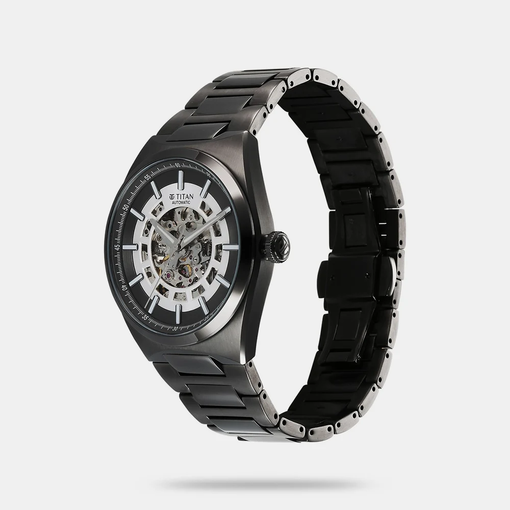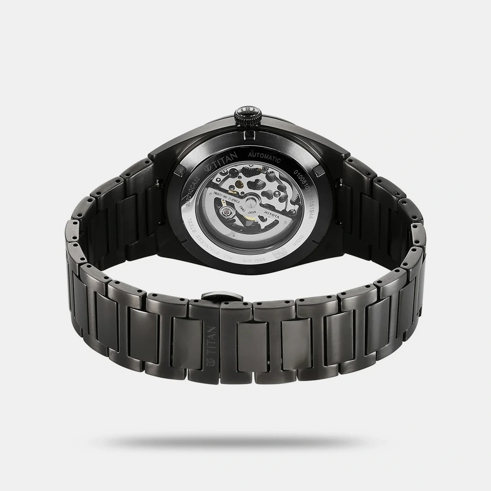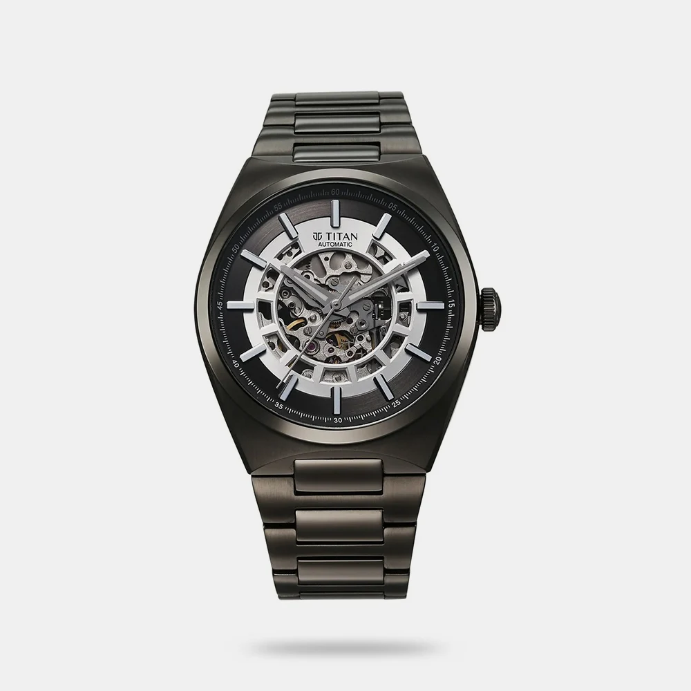 | Name | Titan Nexus Skeletal Automatic Analog with Gun Dial Gun Stainless Steel Strap Watch for Men – 90221QM02 |