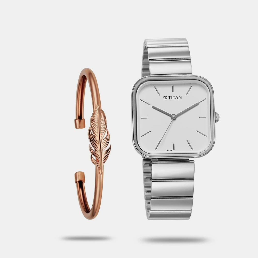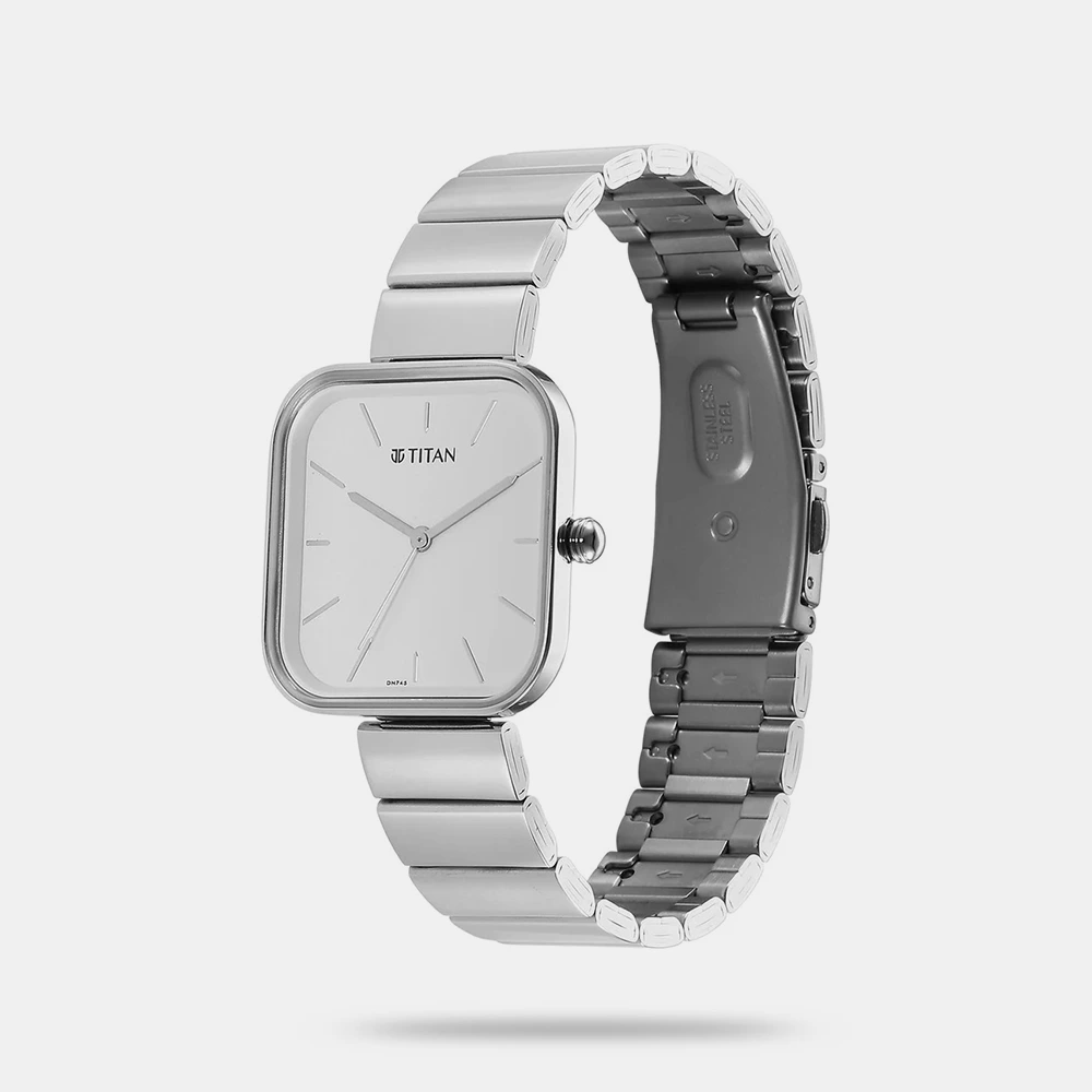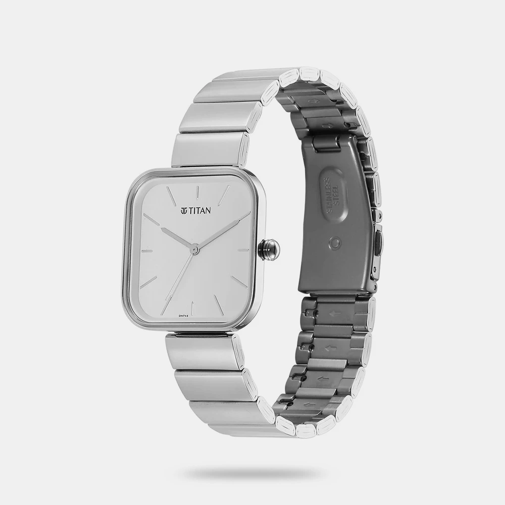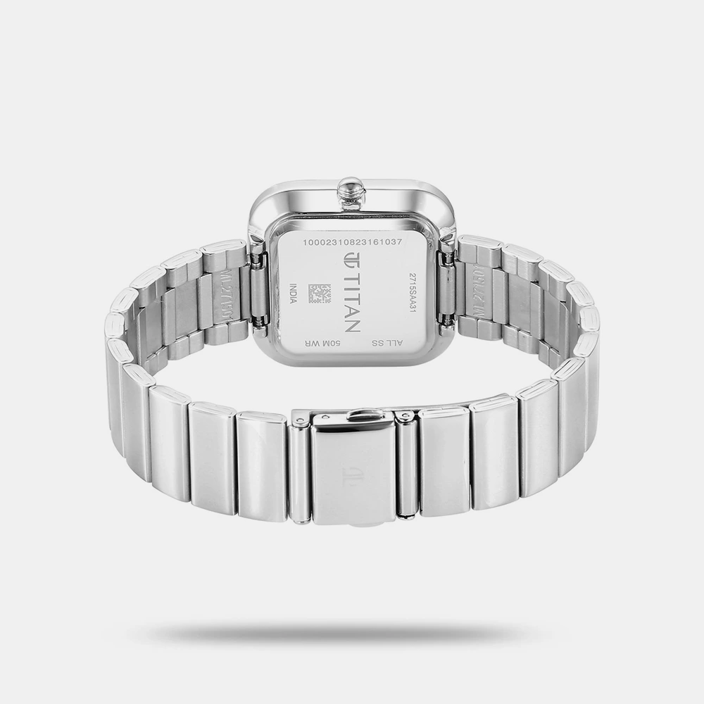 | Name | Titan Purple Stackables Quartz Analog White Dial Stainless Steel Strap Watch for Women – 2715SM01F |