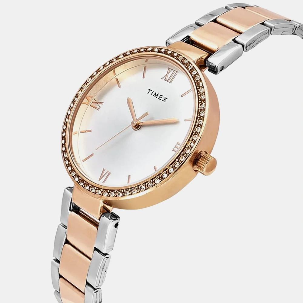 Experience timeless craftsmanship with the TIMEX Watch for Women Analog, a true classic among water resistant watches for man Analog. Designed with a bold 35mm Silver dial and a stylish Two Tone Stainless Steel this Women’s watches model combines modern edge with vintage charm. Built for everyday wear, its Brass case ensures durability, while the 30 m water resistance makes it suitable for daily splashes and unexpected weather. The Analog watch for man runs on reliable Quartz movement, offering precise timekeeping that suits both casual outings and formal occasions. This watch for man ideal for those who appreciate a minimalist look in a classic watch for man making it a perfect choice for office, travel, or daily commutes. Whether you’re shopping a watch for man, a formal watch for man, or a timeless wrist watch for Women, this model checks all the right boxes. It also makes a thoughtful gift, combining elegance with practicality.Its Comes With minimal maintenance and a one-year warranty (limited to manufacturing defects).